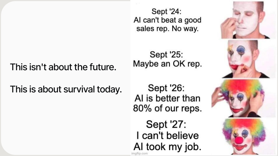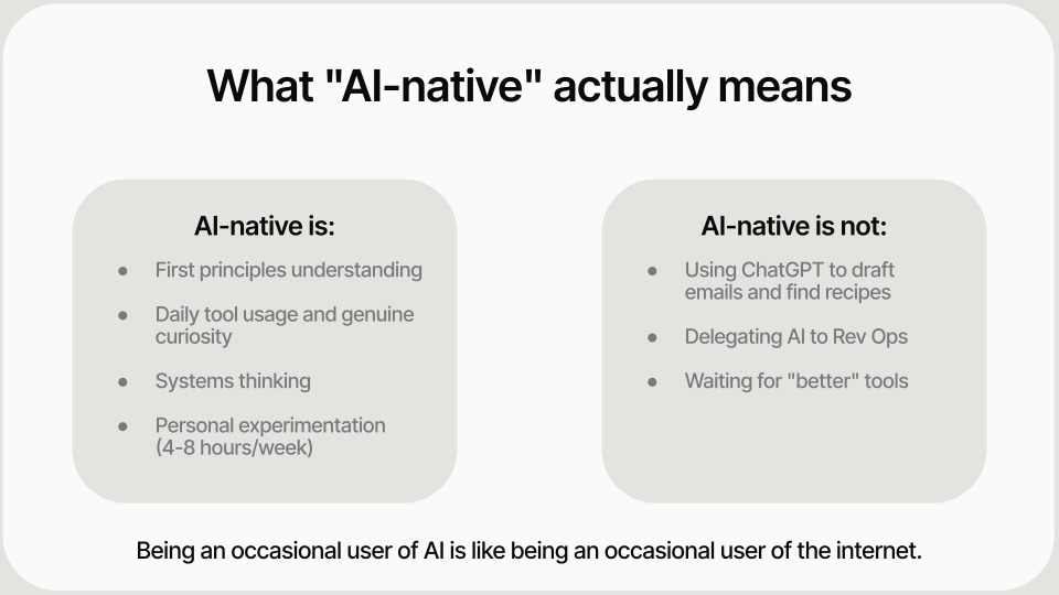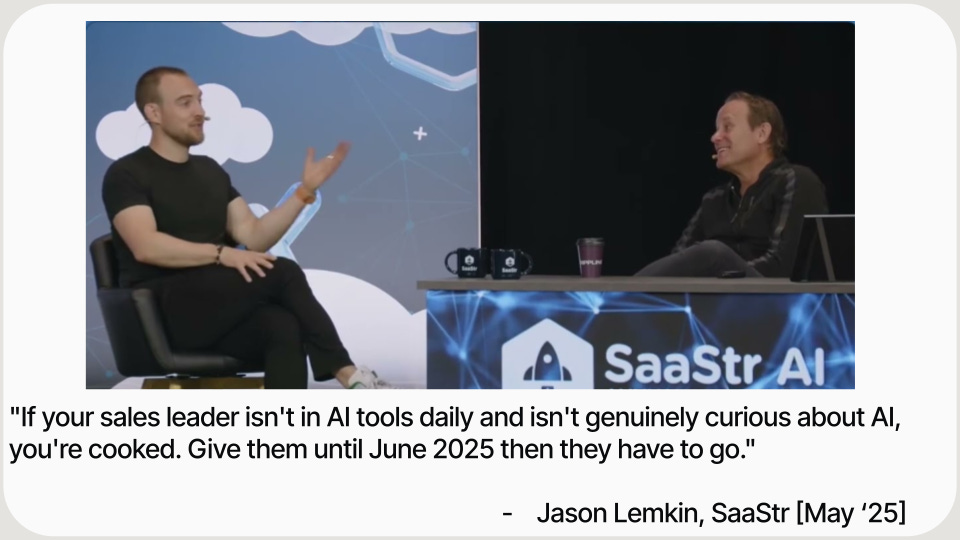 Kyle’s perspective: maybe you’re not cooked in 2025. But in 2026? We’re going to see a great bifurcation in go-to-market outcomes. Companies using AI heavily to create leverage versus companies that don’t.