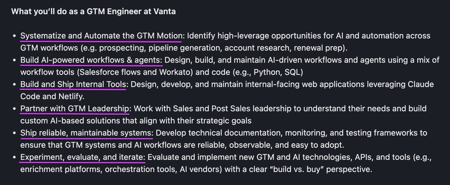 Vanta’s job description is a good example (GTM Engineer, AI):