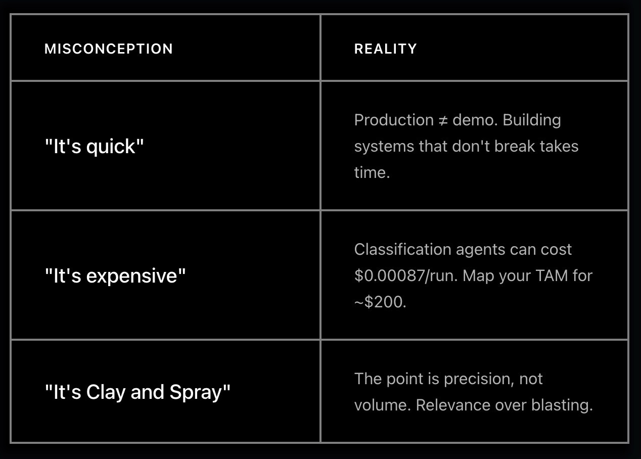 This is why these engagements aren’t 3-week projects. Building systems that work in production take iteration. It takes partnership between the builder and the GTM team. It takes patience.