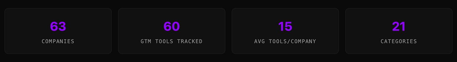 We analyzed the GTM tech stacks of 62 of the fastest-growing private B2B companies to find out what the best companies actually use. The results challenge a lot of conventional wisdom about what a modern GTM stack looks like.